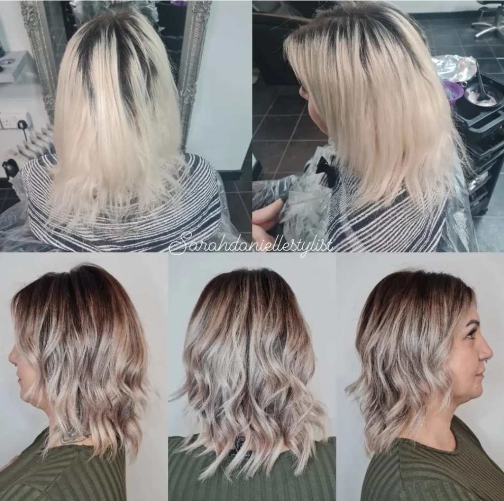 Products used and available for home care maintenance include Olaplex, Moroccan oil, Color wow, IQ, Alfaparf, Bedhead and Schwarzkopf.